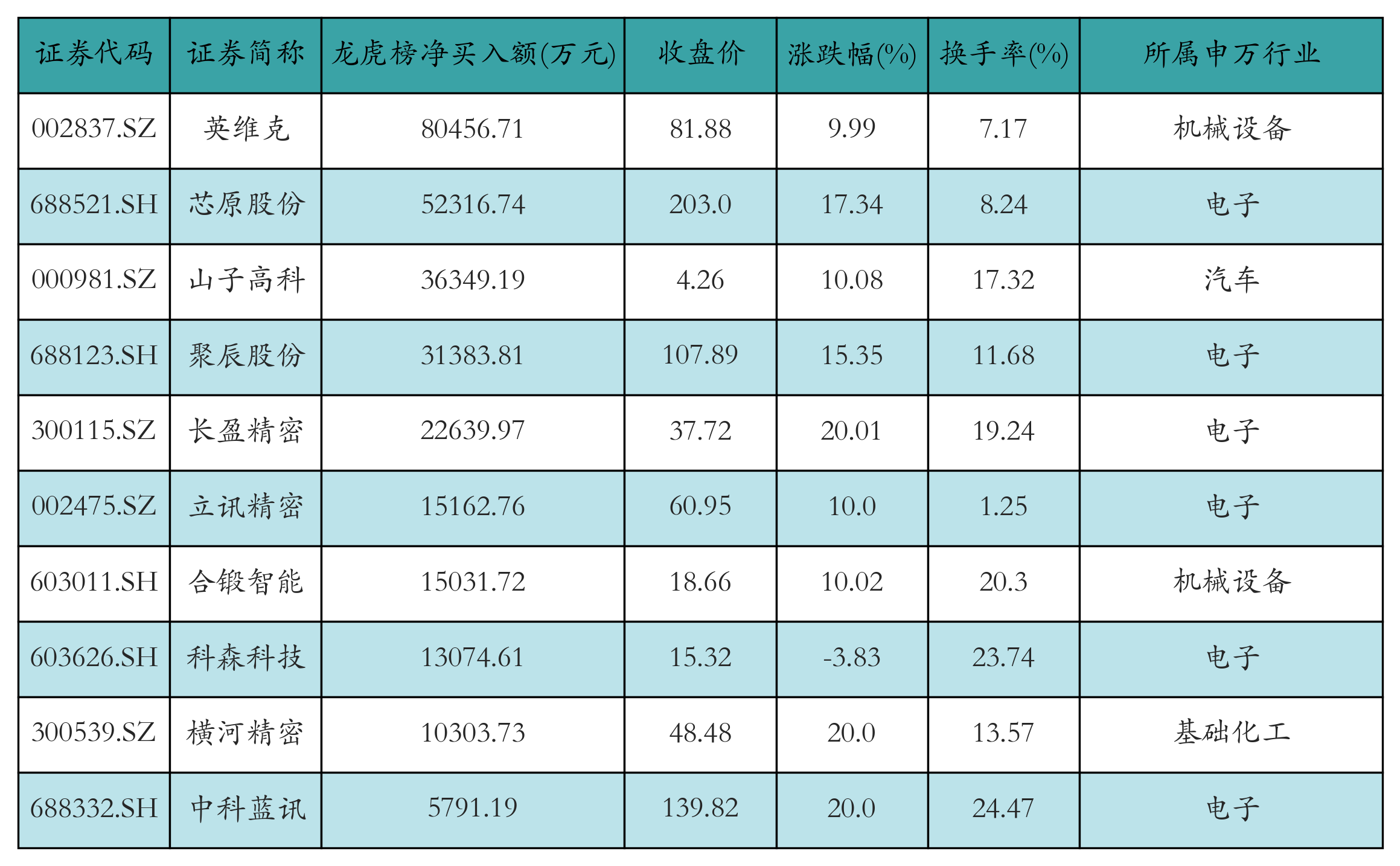 昨日龙虎榜营业部净买入额前10详情见下表: